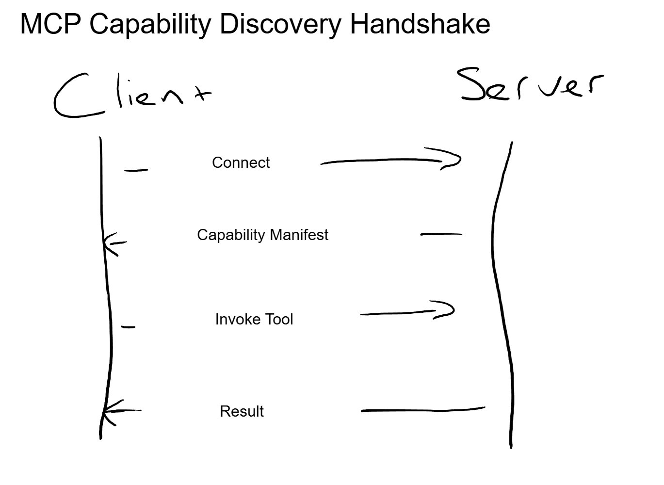 Here is the key part. The client does not need to know in advance what a server can do. It connects, asks "what do you offer?" and the server responds with its complete capability manifest: every tool, resource, and prompt it supports, along with their schemas and descriptions.
